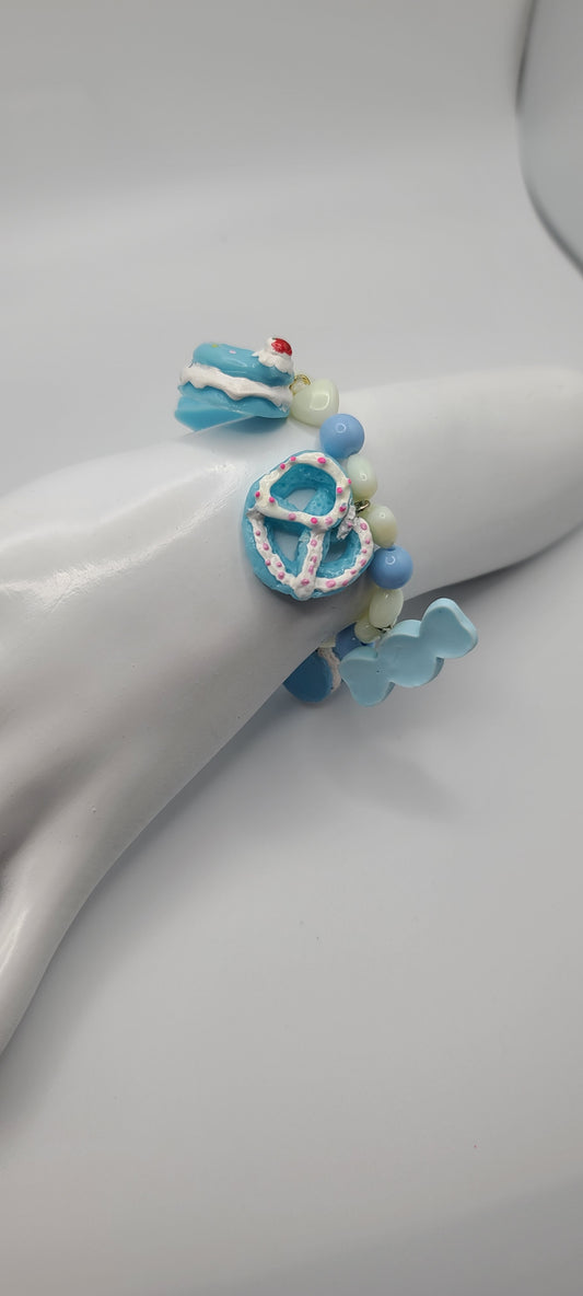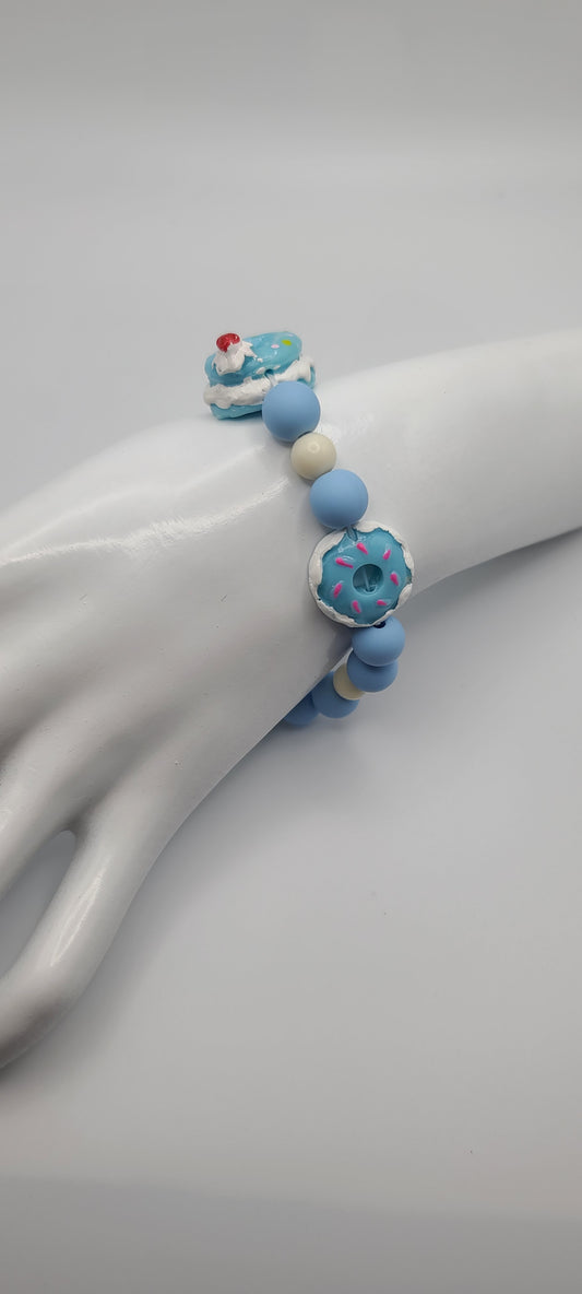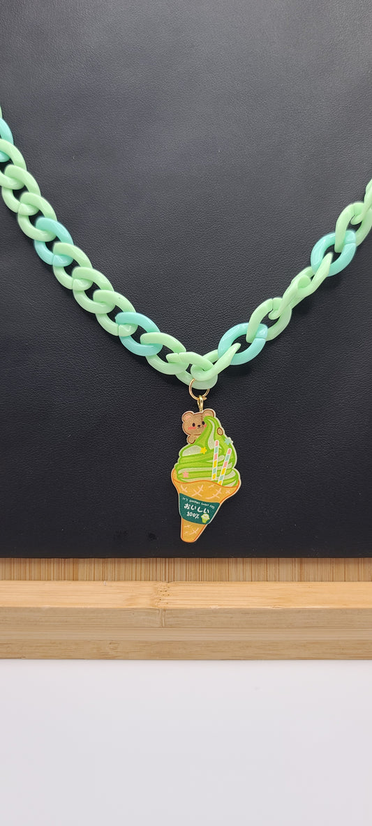 Green Plastic Chain Necklace with Green Ice Cream in a Cone with a Brown Bear Acrylic Charm