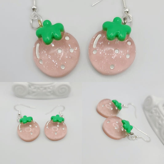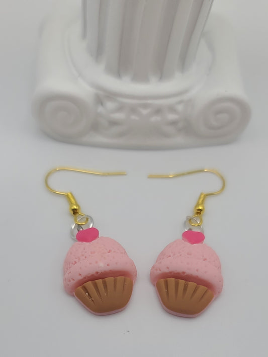 Kawaii Pink Strawberry Topped Cupcake Earrings