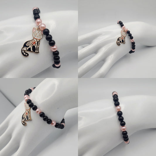 Gothic Skeleton Zombie Cat or Bat with Black and Pink or Purple Beads