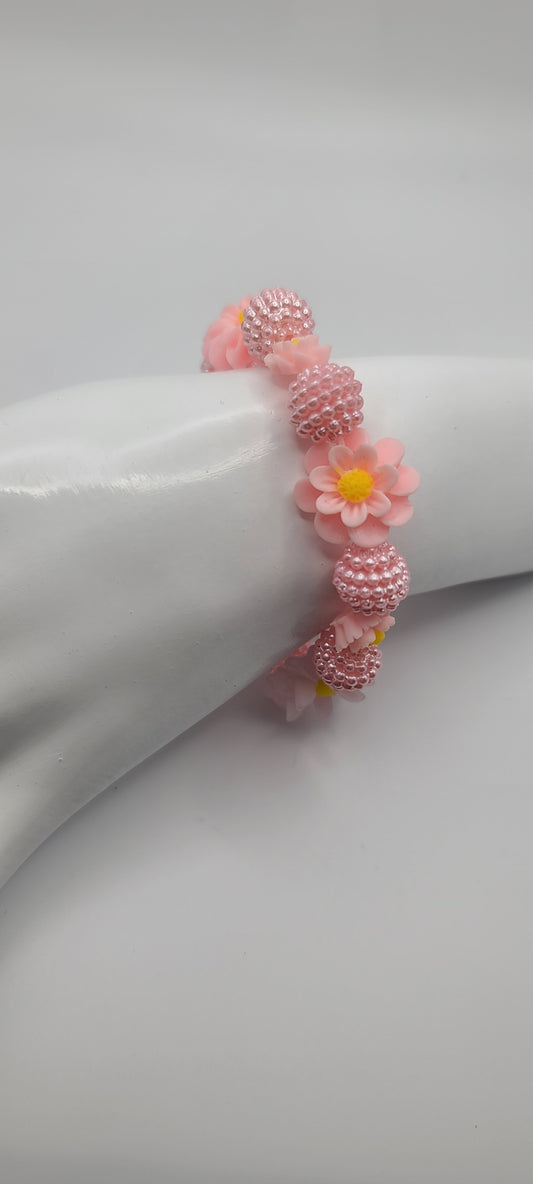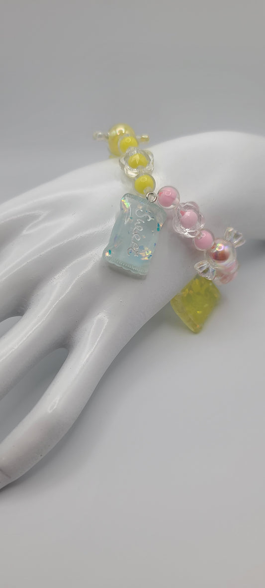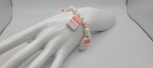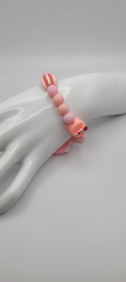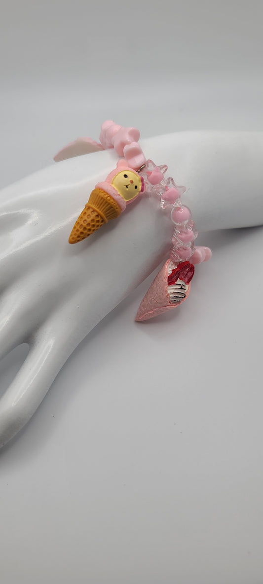 Pink Ice Cream Popsicle Bunny Pink and White Beaded Bracelet