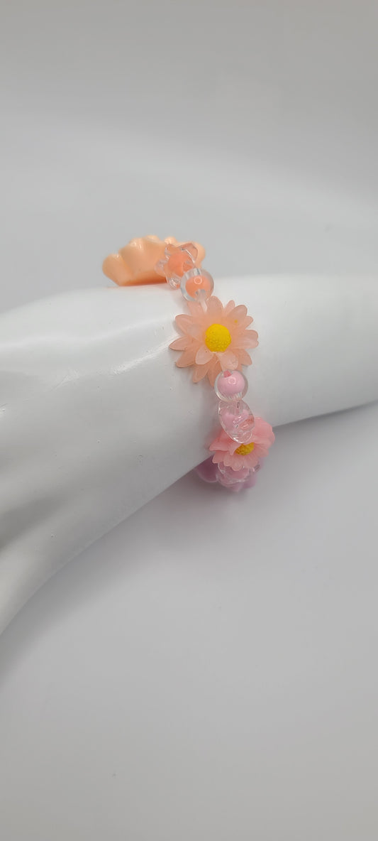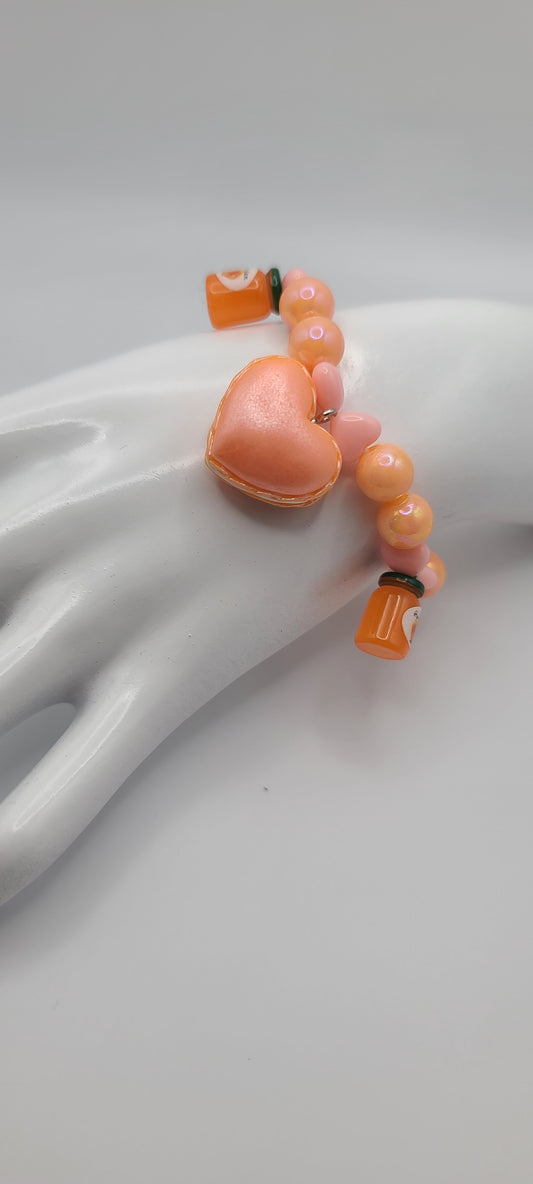 Orange and Peach Beaded Elastic Bracelet with Peach Jam and Heart Macaron Charms